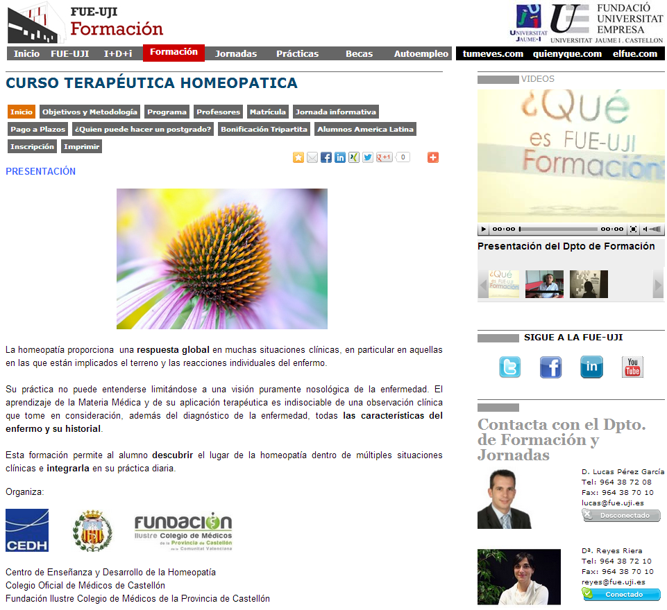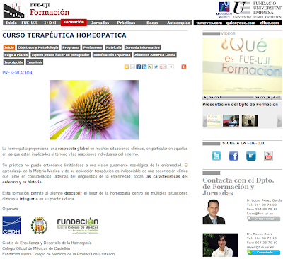 Y aunque la noticia esté oculta tras una paywall, yo se la cuento... o, mejor dicho, lo puede hacer la propia Universidad Jaime I, que ya ha hecho pública su oferta de este Curso de terapéutica homeopática: