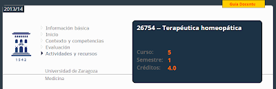 "Terapéutica homeopática" en la Universidad de Zaragoza