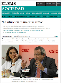 Pero en realidad las comparaciones son lo de menos. Lo importante, lo verdaderamente importante, es que el recorte puede suponer la desaparición del CSIC y, con ella, la puntilla a lo poco que va quedando de desarrollo científico en este país nuestro cada vez más arrasado por los recortes.