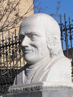 Por supuesto, el señor de la estatua es Samuel Hahnemann, el médico alemán que, tras desechar teorías anteriores sobre la enfermedad y su tratamiento (como la que atribuía el origen de todas las enfermedades al exceso de consumo de café), un buen día tuvo la ocurrencia de inventar la homeopatía. Invento que, aunque en otras partes del mundo se encuentre en franco retroceso (y hasta poniendo en apuros económicos a alguna que otra multinacional del negocio), en Zaragoza se extiende como una mancha de... bueno, de agua.